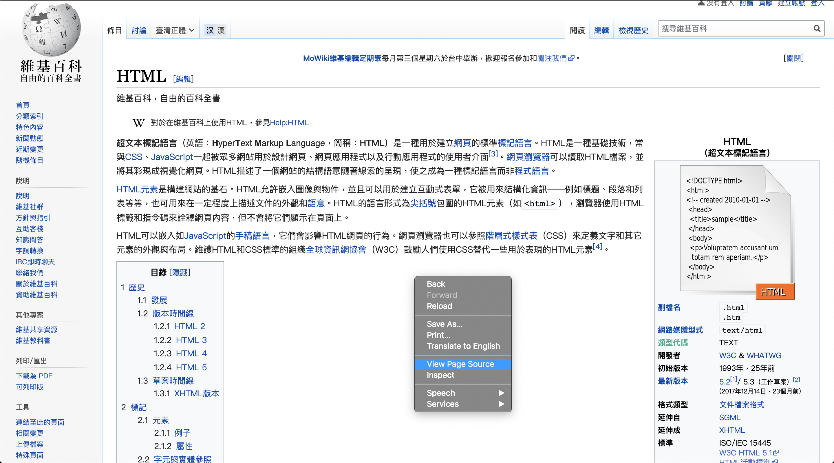 網頁來源:Wikipedia HTML 頁面
