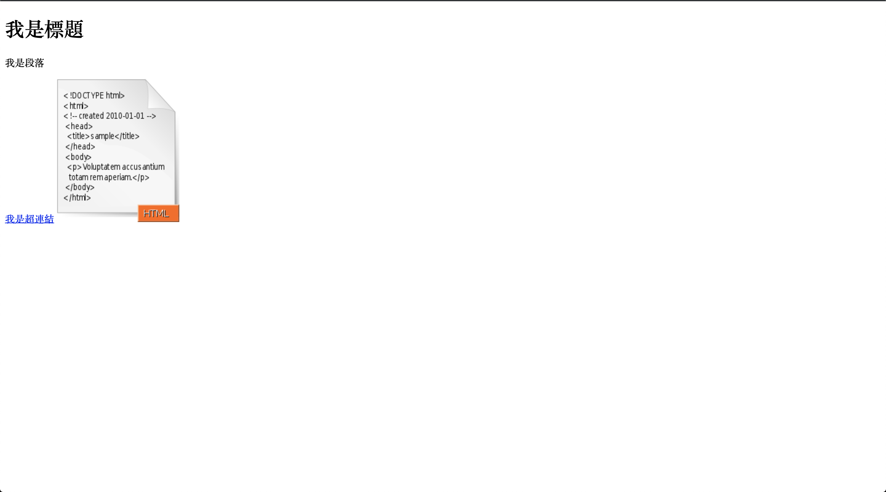若是使用瀏覽器打開這個 HTML 網頁會呈現: